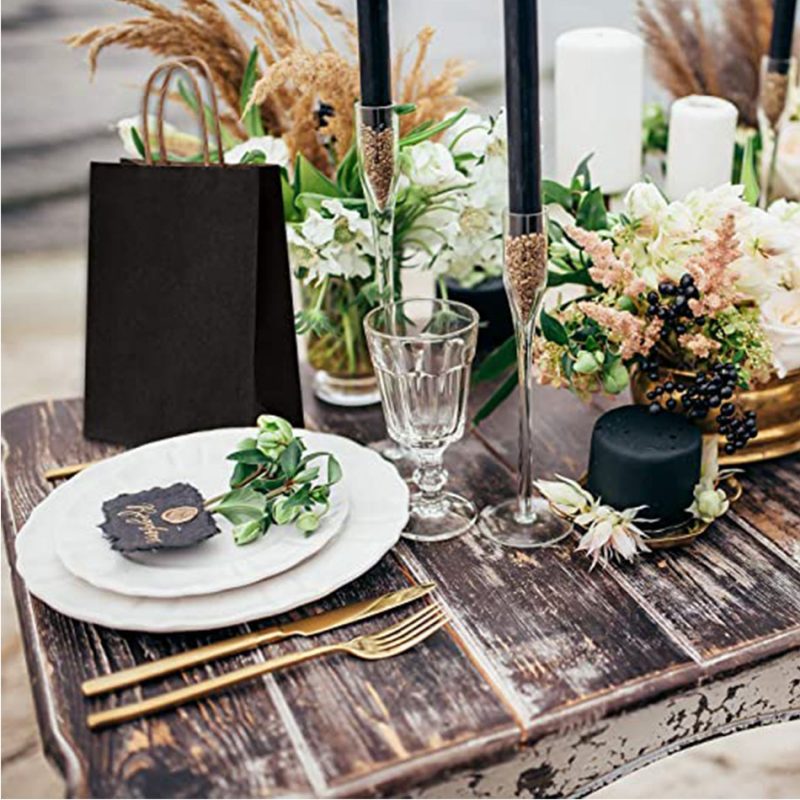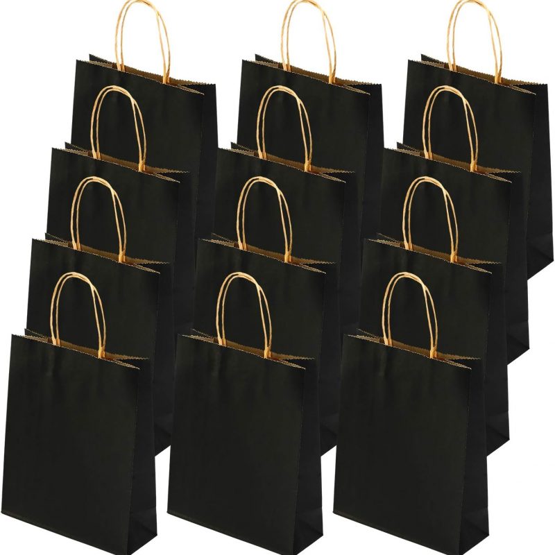 SHOWAY 24 Pieces Paper Party Bags Hen Party Bags Kraft Paper Bag Bride Birthday Gift Bag Wedding Celebrations Bags for Party Favour (Black)