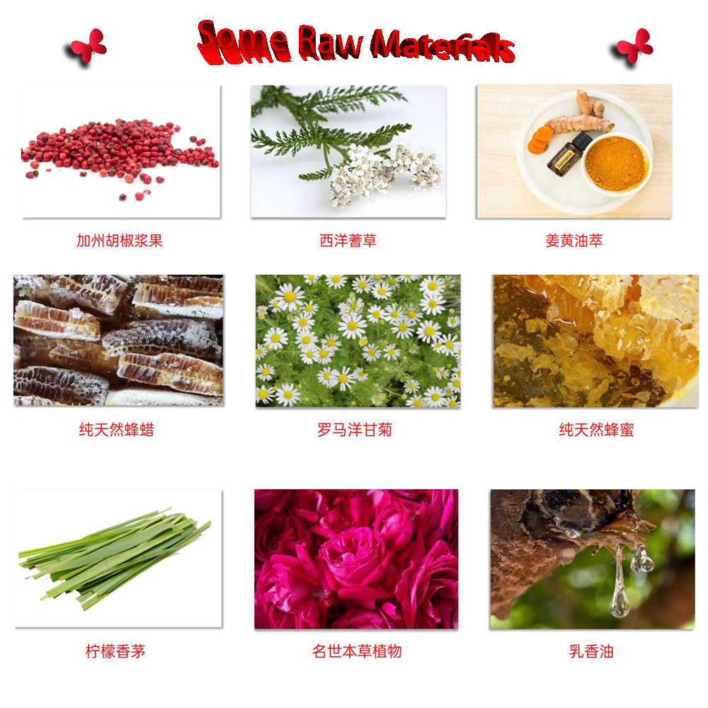Ingredients: olive oil, alpine black honey, wild beeswax, frankincense oil, blood vine extract, yellow root oil, lemongrass leaf oil, avocado oil, California pepper berry, tangerine oil herbal plant powder, etc. More than 90 kinds of natural ingredients pollution-free botanical extracts.