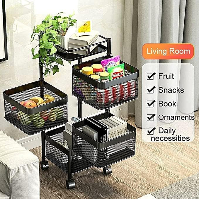 Rotating Storage Rack Multi-layer Kitchen Storage Rack 4-Layer Square Basket