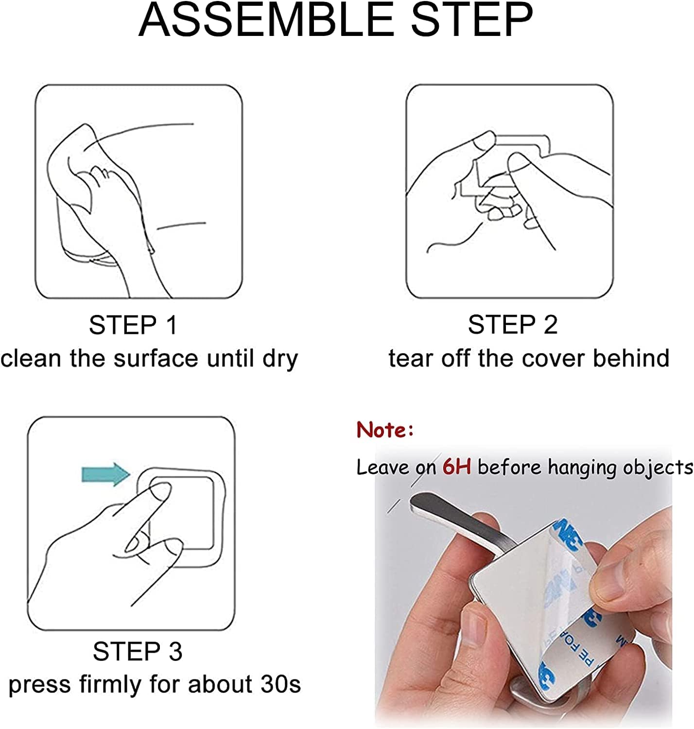 - Easy to Use & Tidy: You don’t need to drill holes in the wall, just peel off the adhesive strip and stick it on the wall. Adhesive backing, strong viscosity, waterproof and rustproof. After the installation is complete, please wait 24 hours before hanging anything.