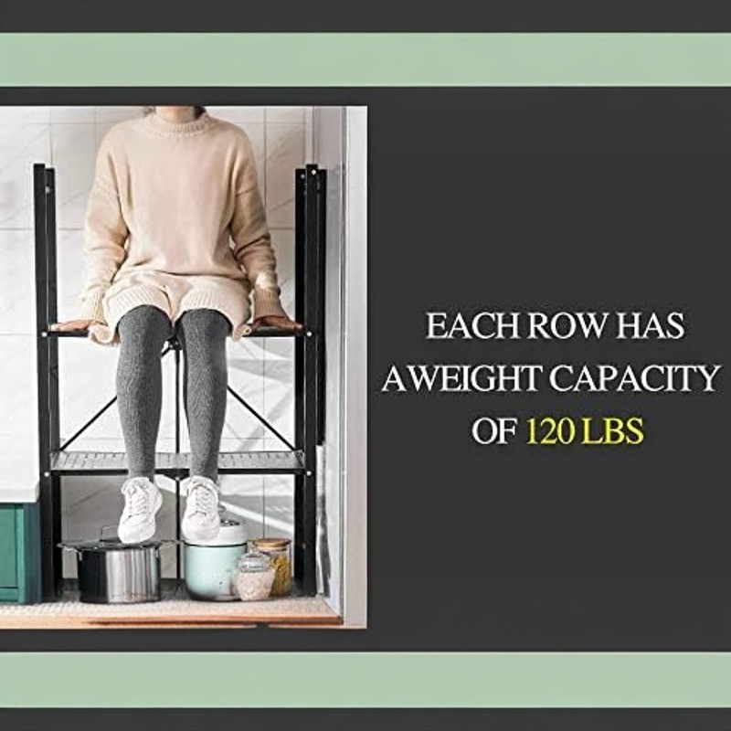 SHOWAY 4 Layer Shelf Foldable Storage Shelving Unit with Wheels, Metal Storage Rack Display Rack for Garage Kitchen Pantry Closet Laundry, Black 4Layershelf, STR-4326, 4-shelf