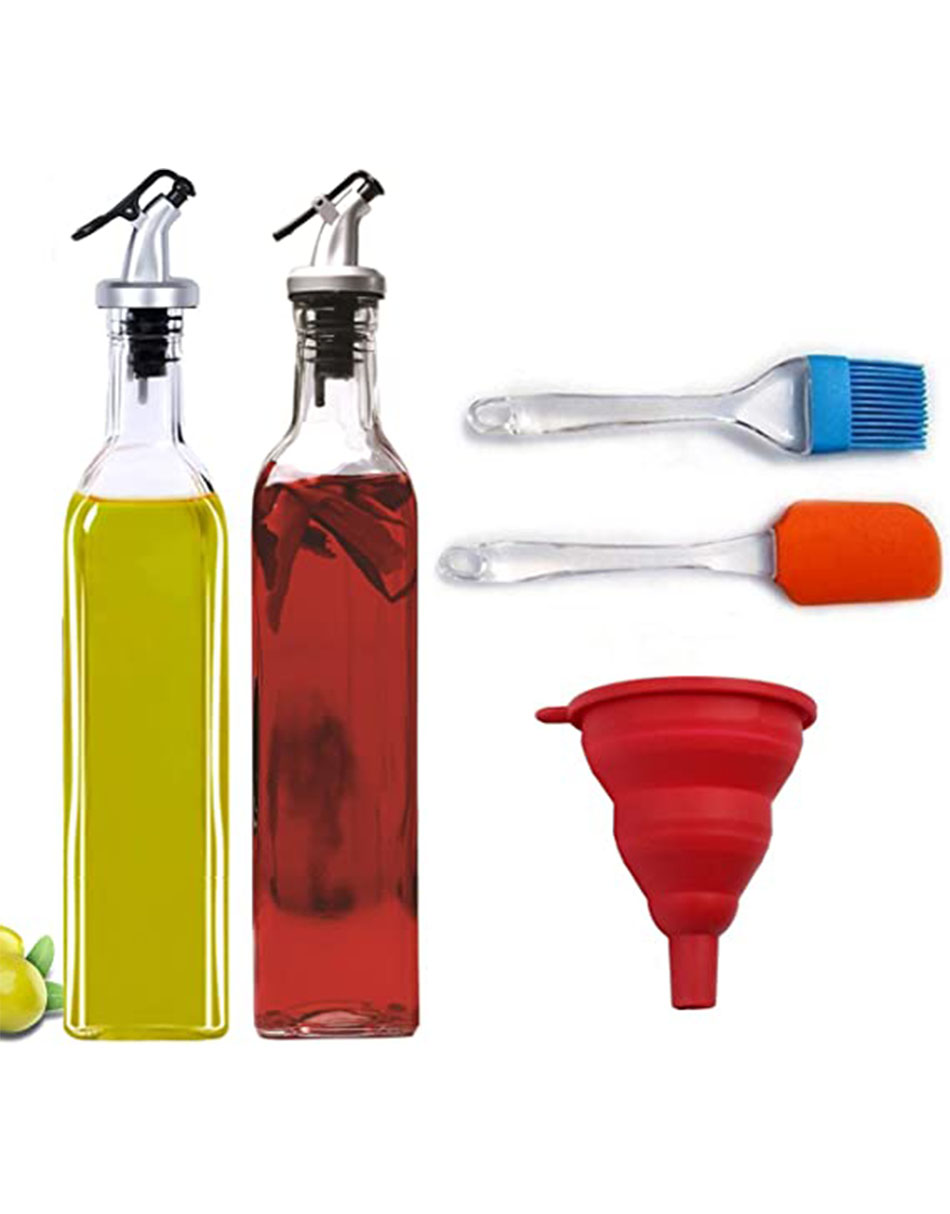 Showay Glass Storage Bottle Dispenser Cruet Seasoning Set (Transparent, 250ml, 250ml) – Pack of 2
