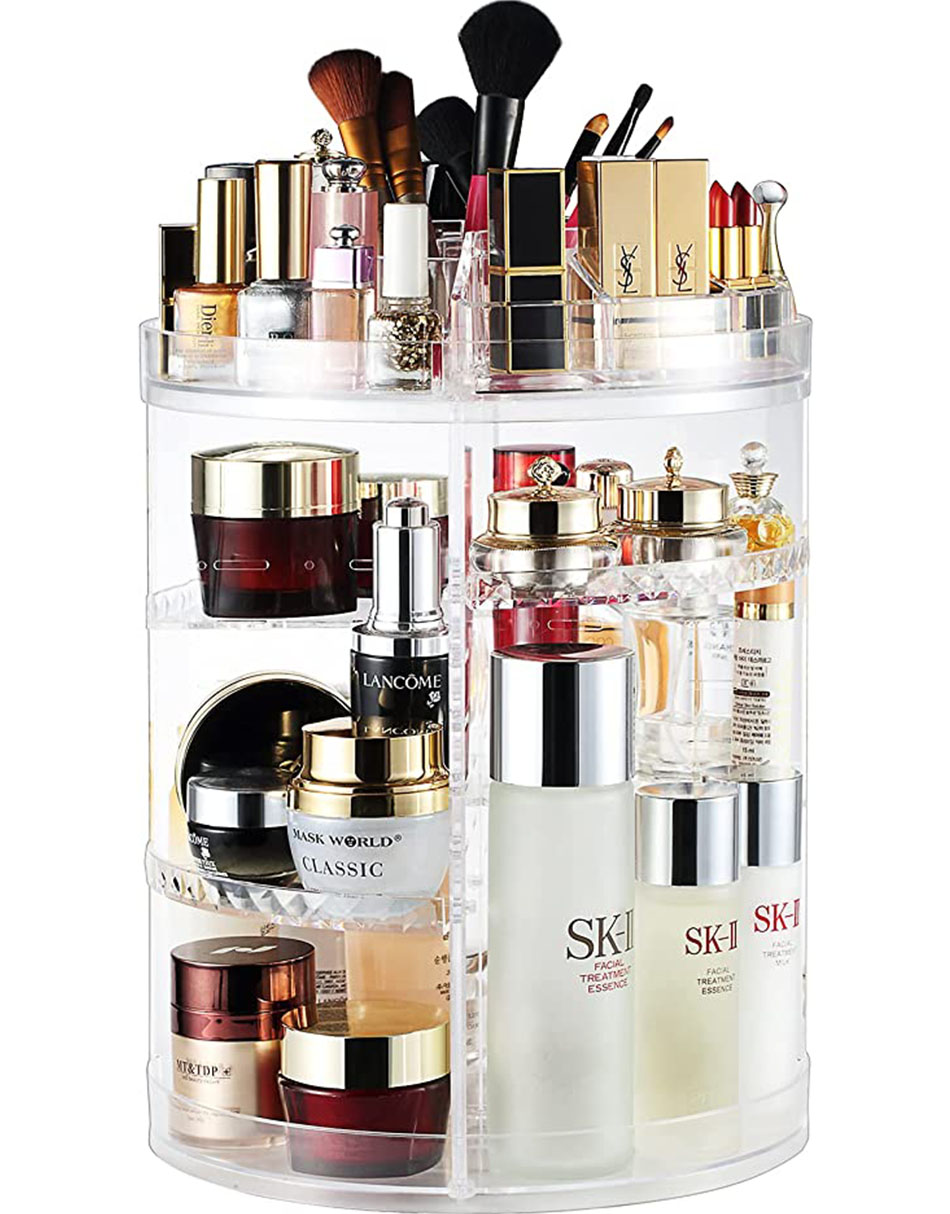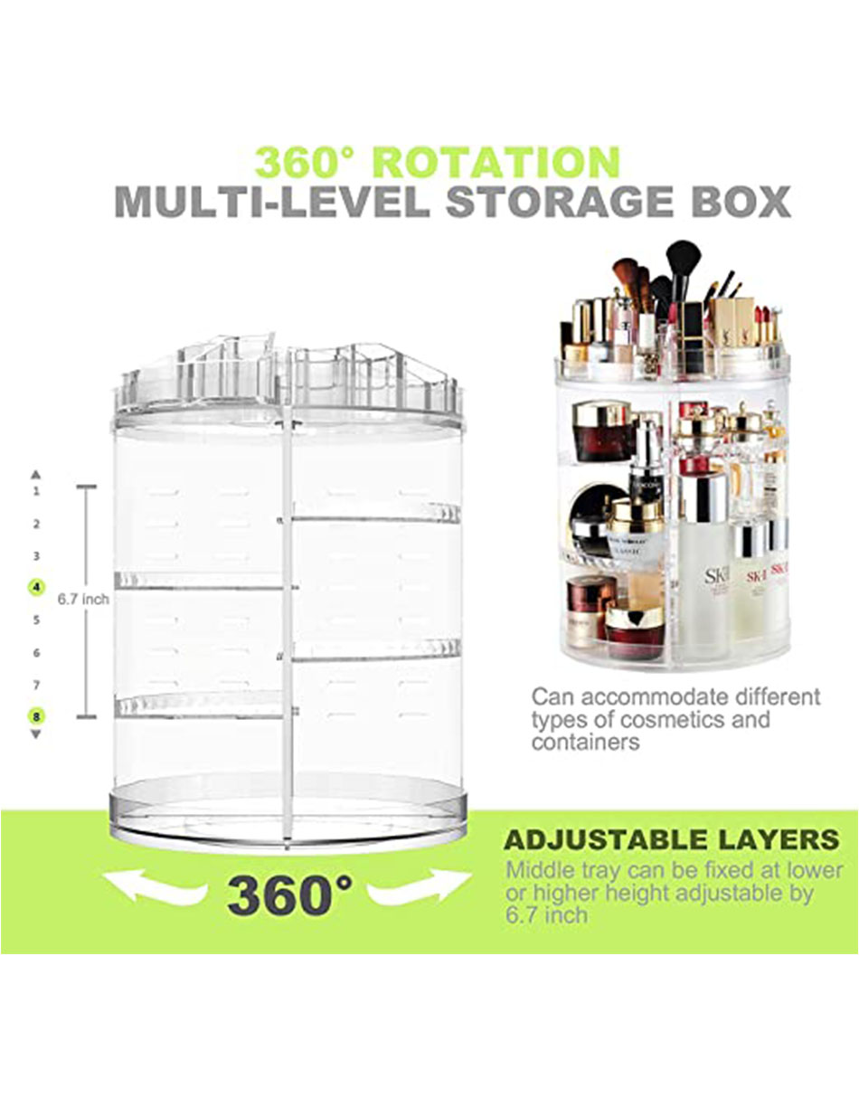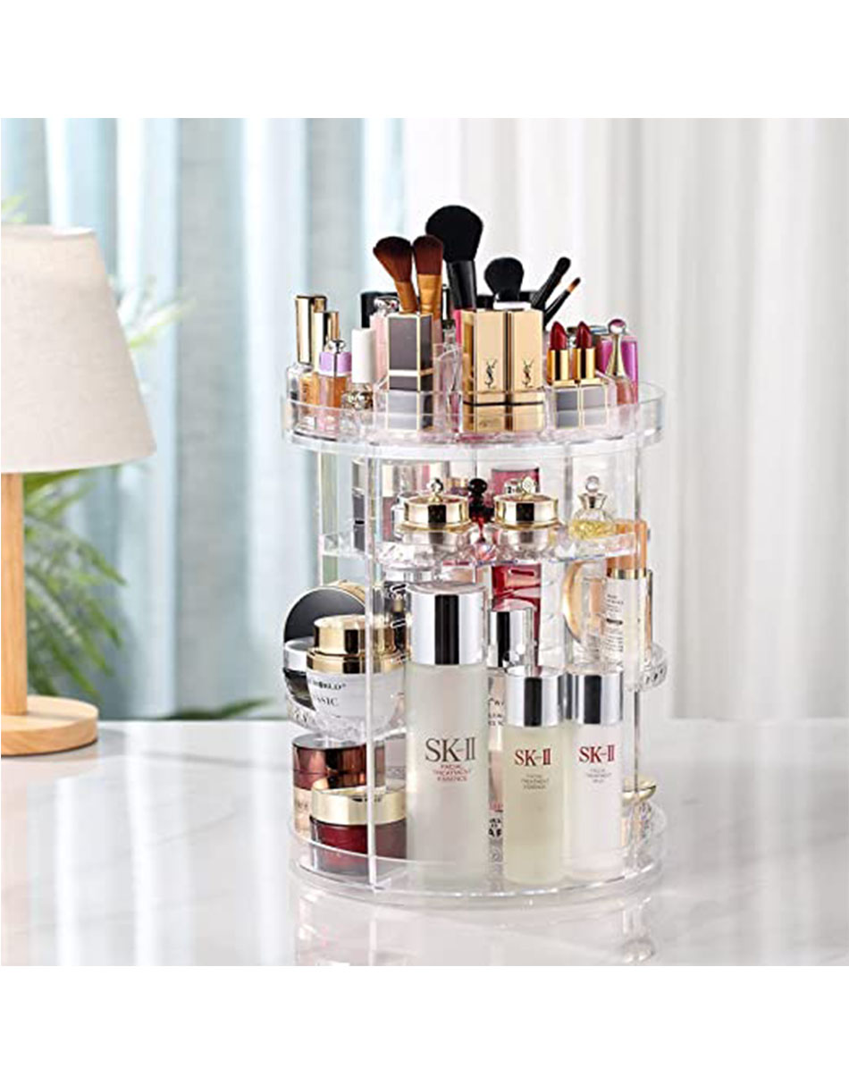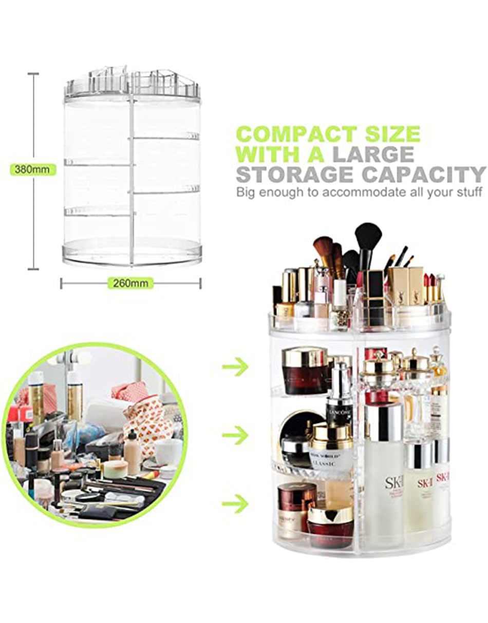 - 360 DEGREE ROTATING MAKEUP ORGANIZER: Perfectly organizes and stores your cosmetics and accessories. Easy access to all of your makeup products.It’s a Perfect Christmas Gift for your friends, family members and any makeup lovers.